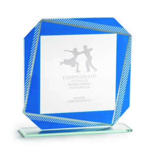 PREMIUM SQUARE GLASS AWARD 14CM WITH BLUE ACCENTS – CUSTOM ENGRAVING AVAILABLE
