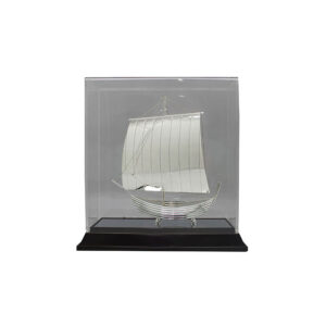 SILVER-PLATED KYRENIA SHIP IN PLEXIGLASS DISPLAY BOX – MEDIUM (15X19CM)