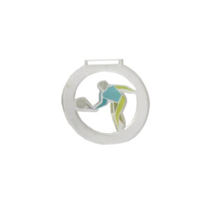 SILVER SWIMMING AWARD MEDAL – 50MM WITH CUSTOM PRINTED LABEL