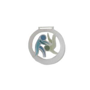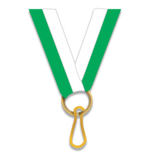GREEN AND WHITE NECK RIBBON 2.2CM WITH CLIP FOR AWARD MEDALS