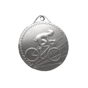 SILVER CYCLING MEDAL 50MM WITH CUSTOM PRINTED LABEL – PERSONALIZED SPORTS AWARD