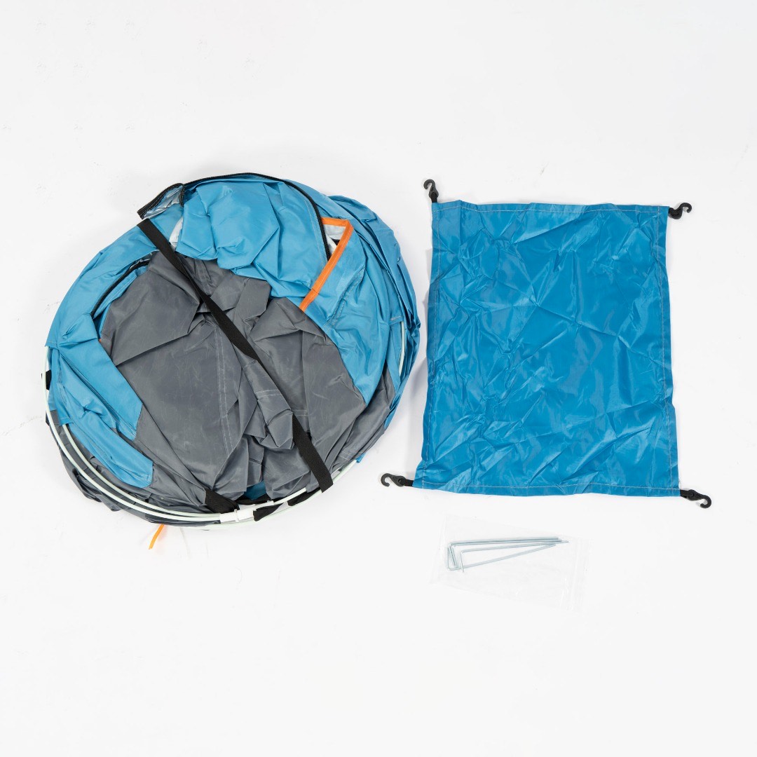 2 DOOR. FLAT PACK. INCLUDES UP TO 2 COLOR LOGO PRINTING. POLE: 5.0mm FIBERGLASS MATERIAL. 190T SILVER TAPE. BOTTOM FABRIC: 210 OXFORD CLOTH. OPEN SIZE: 200*200*135cm. FOLD SIZE: 50cm*10cm*10cm