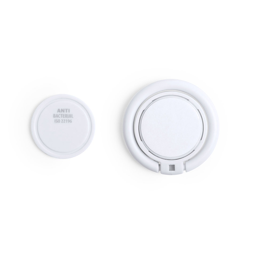 Antibacterial sticky holder with extra strong fixation 3M adhesive. Designed for smartphone, with integrated shopping trolley coin and 360? rear finger ring, with holder and accessory for selfies function.
