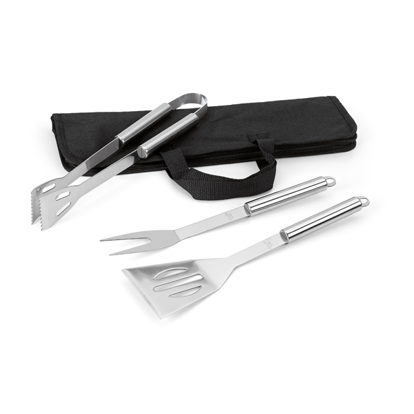 BARBECUE SET. STAINLESS STEEL. 3 PIECES IN NON-WOVEN BAG.