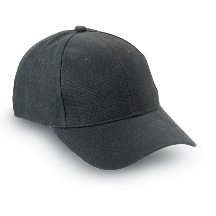 6 panel baseball cap in brushed cotton 260 gr/m2 with antique copper finish metal clips on adjustable strap closure. 6 stitched eyelets in matching colour. Size 7 1/4.