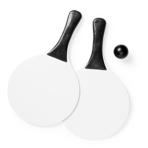 Pair of beach rackets in natural wood with reinforced handle in varied tones. Presented in a mesh bag with matching color ball. 19 x 33 x 0.6 cm | 330 gr. Normal Service: 1 Week.