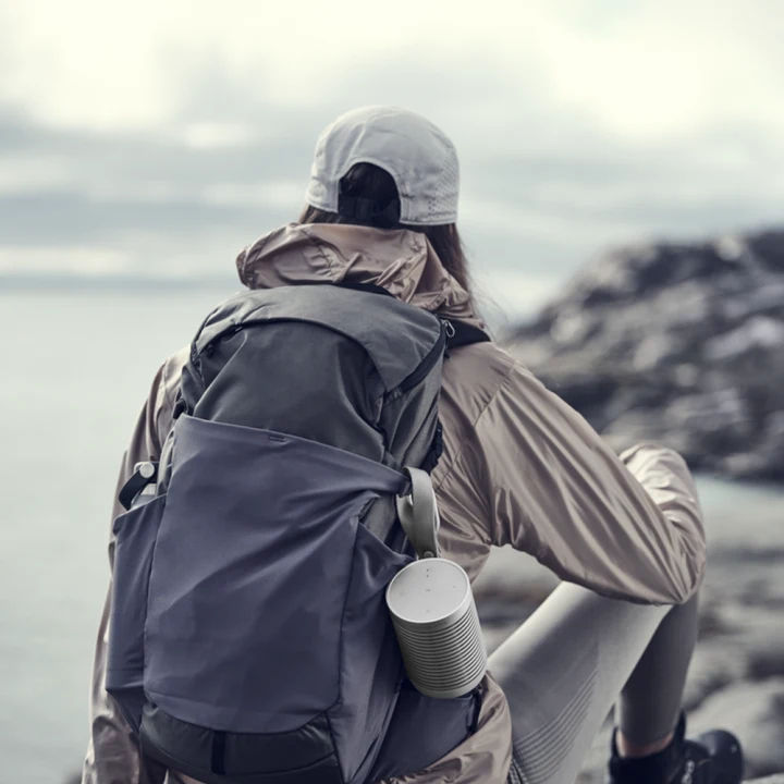 Waterproof outdoor speaker. Extremely tough. And ready for anything. Beosound Explore is a rugged Bluetooth speaker that’s crafted for adventure. Included in the box: Beosound Explore, Carabiner, Quick Start Guide, USB-C to USB-A cable. 8.1 W x 12.4 H x 8.1 D cm. Battery Playtime Up to 27 hours. Bang & Olufsen