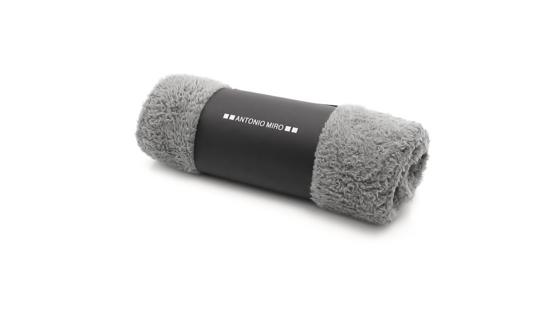 Blanket by Antonio Miro. 130x160cm, in soft and warm polar fleece of 260g/m2 with anti-pilling treatment. Elegant design in grey tones and presented in a sleeve with the the brand logo.
