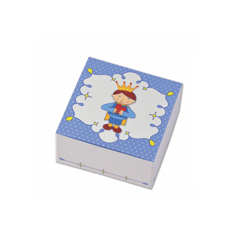 BOX FOR TREATS WITH PRINCE DESIGN WITH DIMENSIONS OF 8 X 8 X 4 CM, NORMAL SERVICE: 1 WEEK
