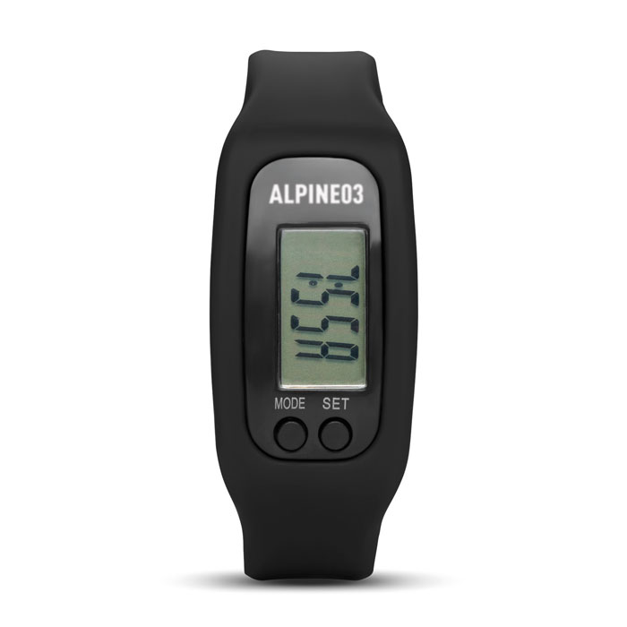 Pedometer bracelet. Includes step, distance, time and calorie counter. 1 AG10 cell battery included.