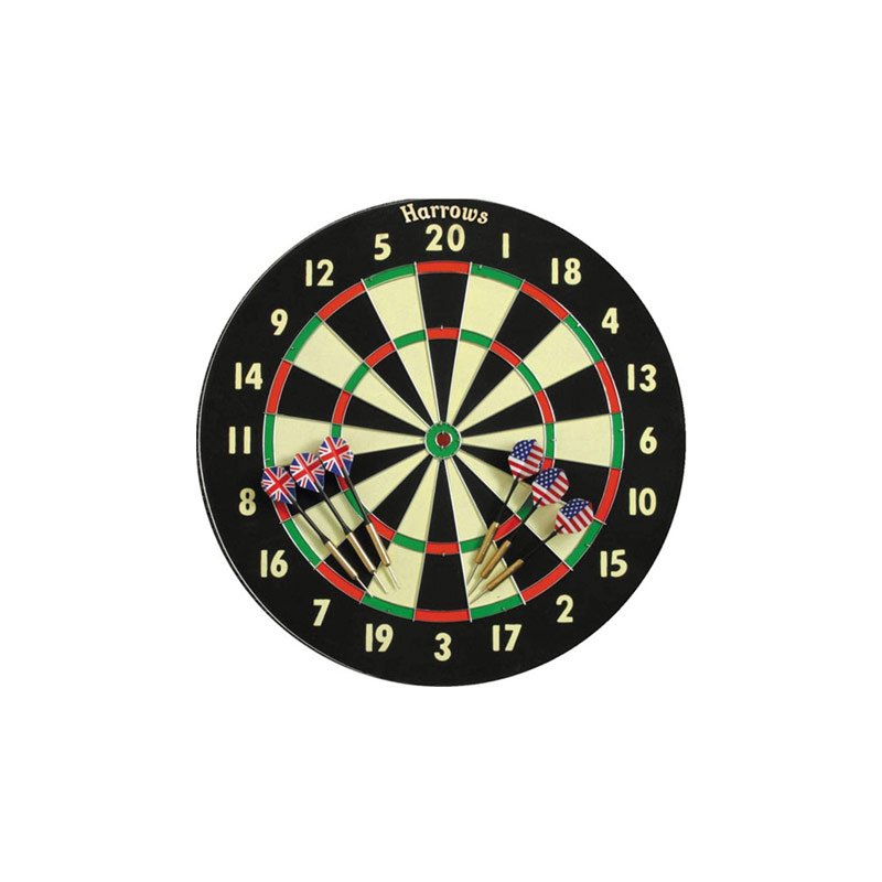 Eric Bristow’s Family Dart Game. Harrows darts technology. Ideal for home play. Includes reversible dart board & 6 darts in a fully explanatory and stunning carton.