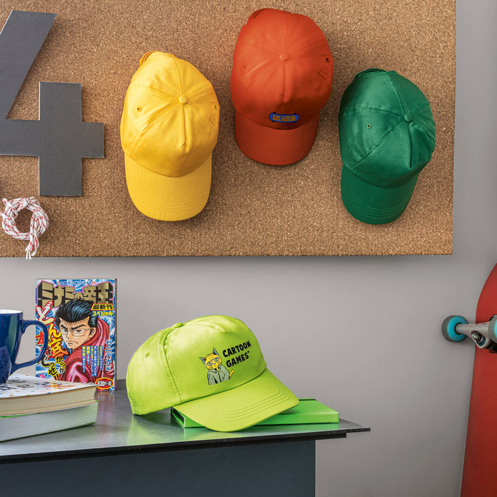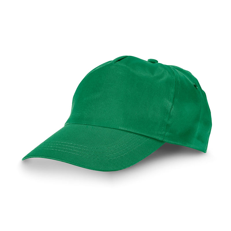Polyester cap with eyelets and adjustable velcro closure. It is available in a variety of colors. Size: 580 mm