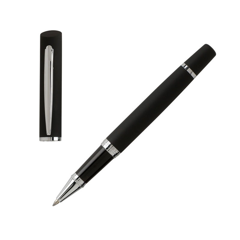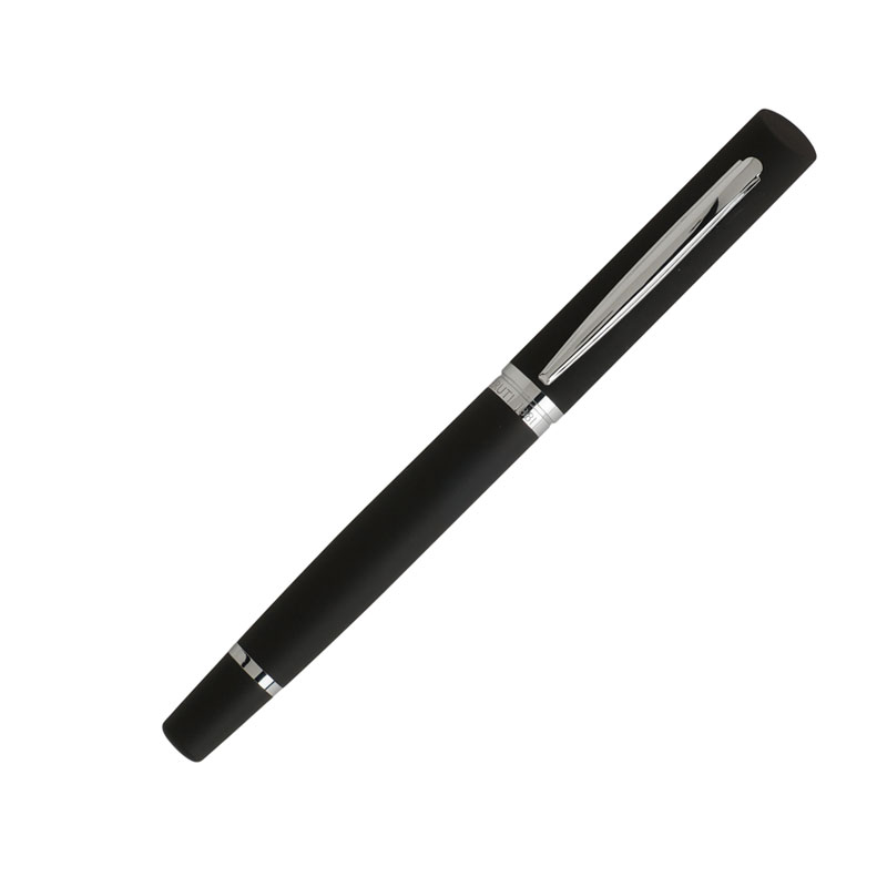 The SOFT TOUCH rollerball pen from CERRUTI 1881 is a pen with a modern look. The pen is light and very well balanced. The top and barrel of the pen are finished with a black rubber coating. The details and clip are in chrome finishes. The brand is engraved on the central ring. The pen comes in a beautiful presentation box.