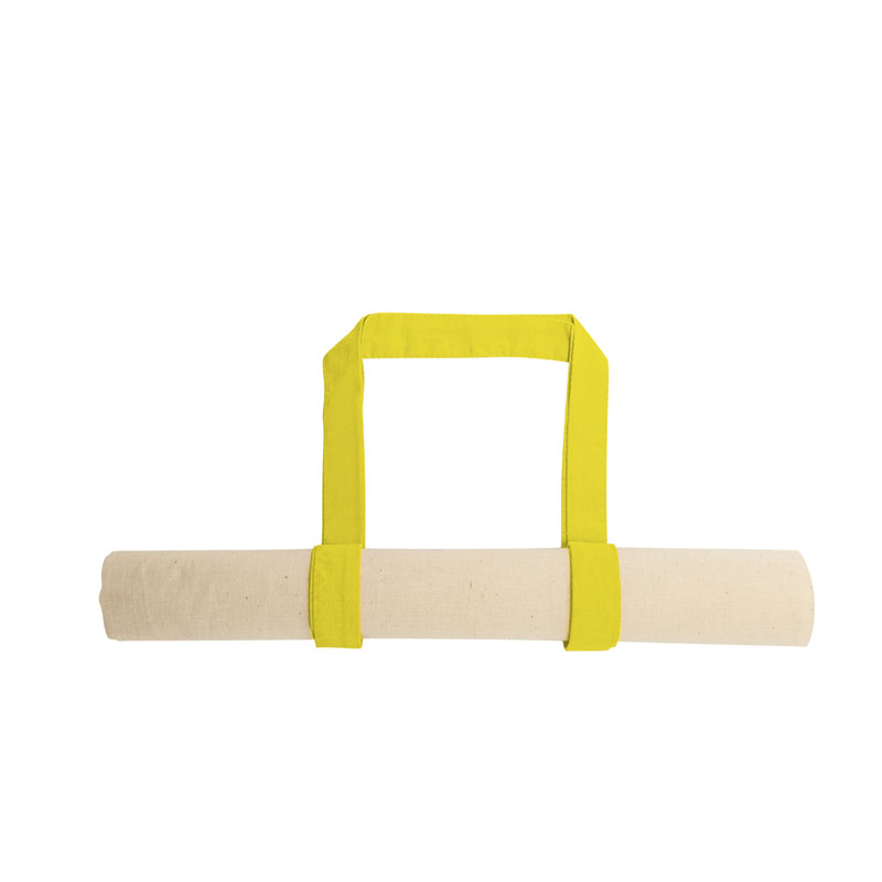 100% cotton material in combination with a body in natural color and handles in a varied range of bright tones. With 70cm long handles and stitched finishing. Resistance up to 7kg of weight. 37 x 41 x cm | 45 gr.