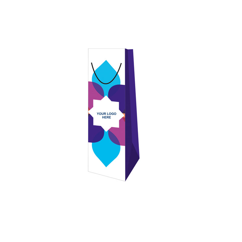 CMYK 4+0; lamination: matt or glossy; handles: polypropylene cord with clips; bottom reinforcement; 10 pcs packed in a polybag. Ideal for wine & spirit bottles.