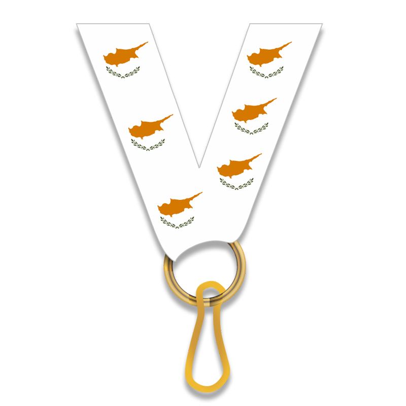 This high-quality white ribbon lanyard features the vibrant flag of Cyprus, measuring 2.2 cm in width perfect for award medals and commemorative events. Durable and stylish, it adds a patriotic touch to your medals while securely holding them in place. Ideal for sports, ceremonies, and special occasions celebrating Cyprus.