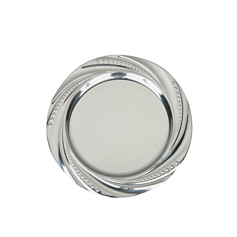 ELEGANT METALLIC TRAY IN SHINY SILVER COLOR. THE TRAY CAN BE ENGRAVED FOR A GREAT AWARD AND A GREAT WAY TO SAY THANK YOU. DIAMETER 30CM