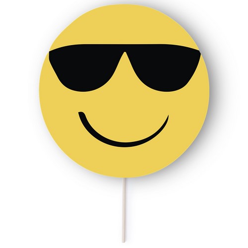 EMOJI SELFIE PAI PAI – YELLOW HAND FANS WITH 4 EMOJIS & WOODEN HANDLES