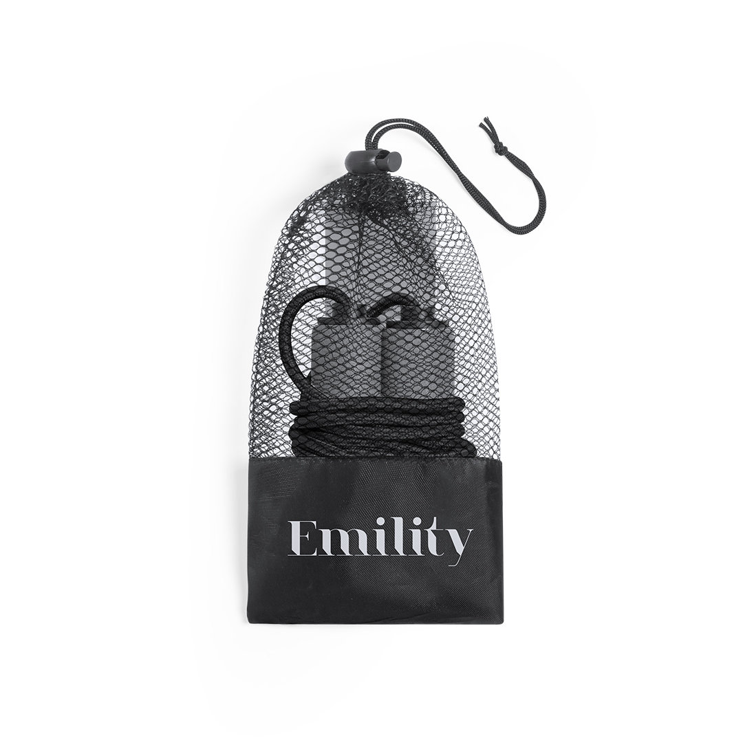 1 elastic band of 25×5 cm made of resistant TPE material and medium resistance 1 x 260 cm jumping rope, with handles. women’s day. Presented in a polyester pouch with a drawstring closure and a fastening accessory. Normal service: 3 weeks, Fast: 1 week