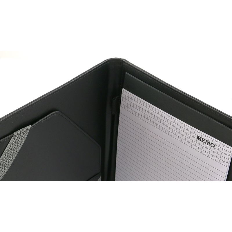 U With original band and metal plate and magnet closure. Inside with elastic tablet holder, notepad of 20 sheets with striped layout, pocket, card holder and pen holder.