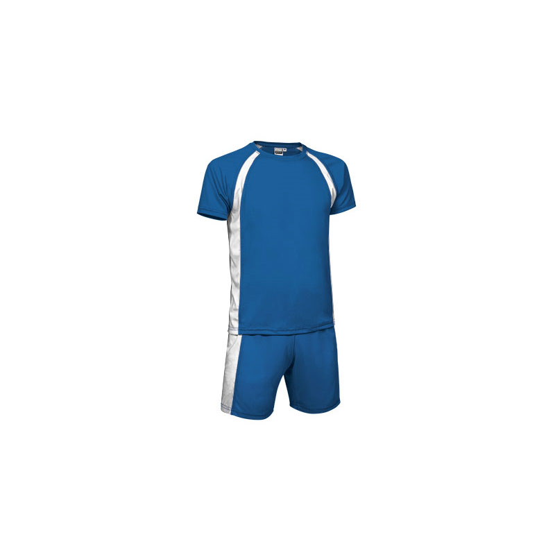 100% polyester. 150 grs/m2 breathable technical fabric. Round neck t-shirt. Shorts with elastic and drawstrings. Ideal for sports such as soccer, handball and volleyball. Adult & Kids sizes.