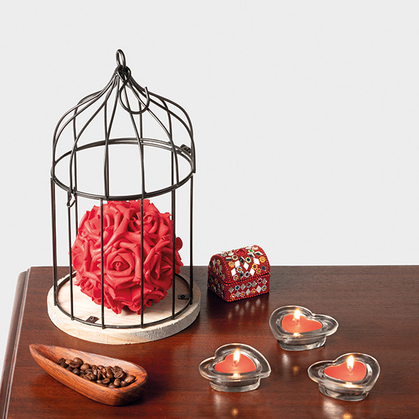 Decorative candle in the shape of a heart on a glass base. In red color, it gives a festive touch to the space. Comes in a beautiful gift box.