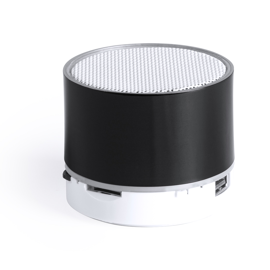 Compact Bluetooth® docking speaker with illuminated inside. Outside surface especially designed for laser printing to illuminate the marked logo. Bicolor design with smooth finish and Bluetooth® 3.0 connection, offers 3W power, hands-free function, a micro SD card slot up to 32GB, FM radio function, auxiliary line input via 3.5mm jack connection and non-slip rubber mounts on the base. Compatible with iOS and Android, includes mini USB charging cable, 3.5mm auxiliary jack cable and comes in an attractive design box.