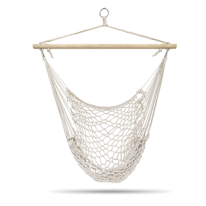 Hammock canvas chair in polycotton pouch. Hang this in the garden, balcony, or inside your home. The chair supports a maximum weight of 100kg.