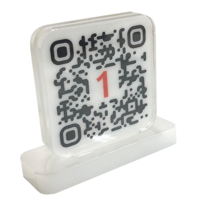 Crafted from high-quality clear plexiglass, the stand features a sturdy base available in black or white, offering a clean, minimalist look that complements any interior or brand style. Ideal for promoting digital ordering, menu access, or quick links to apps and services.