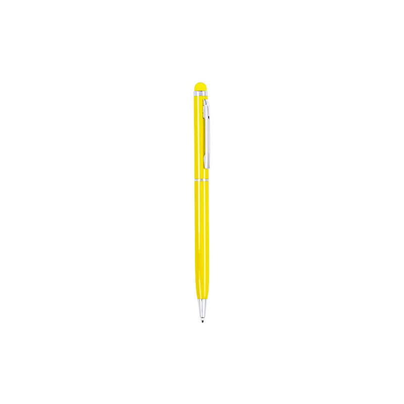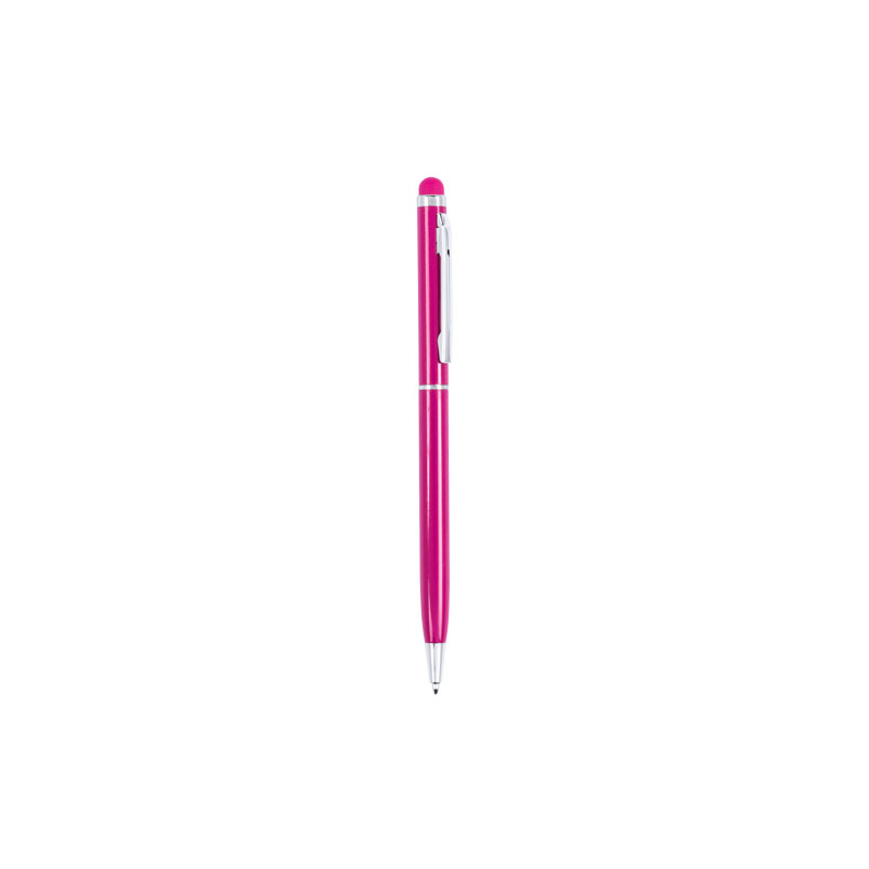 Ultra-fine aluminum body in a smooth metallic finish in varied colors and matching color stylus. Details and rings in silver color. Blue ink. 9.5gr.