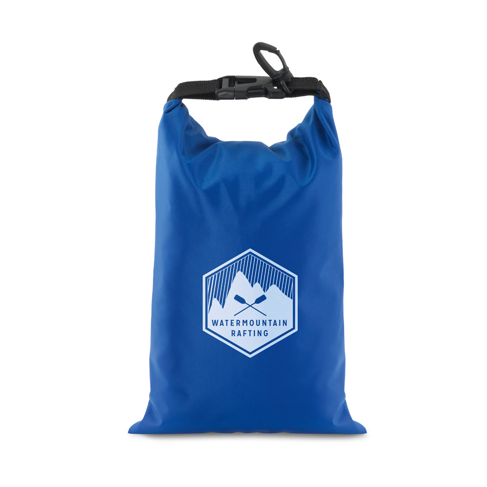 Waterproof tarpaulin bag with click fastener and carabiner. Practical and compact, is easy to fold to take up less space. Capacity up to 1.5/2.5 L.175 x 325 mm