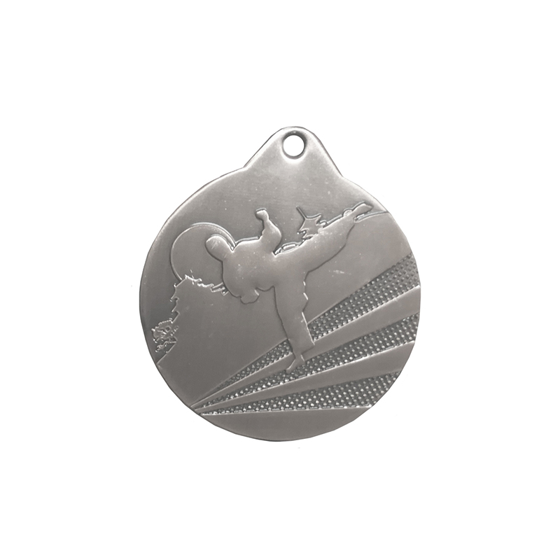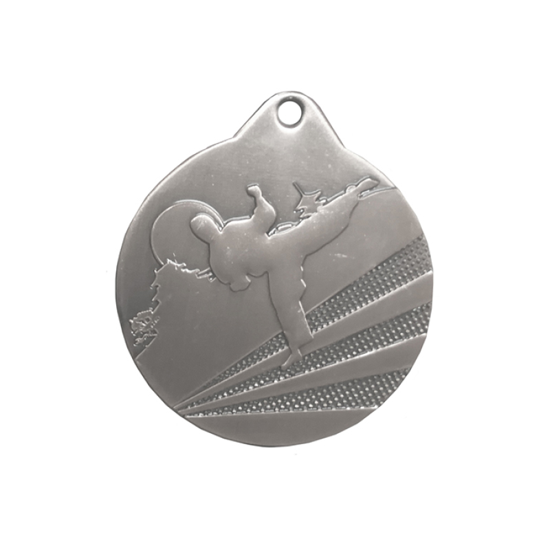 SILVER KARATE MEDAL 50MM WITH CUSTOM PRINTED LABEL – MARTIAL ARTS AWARD TROPHY
