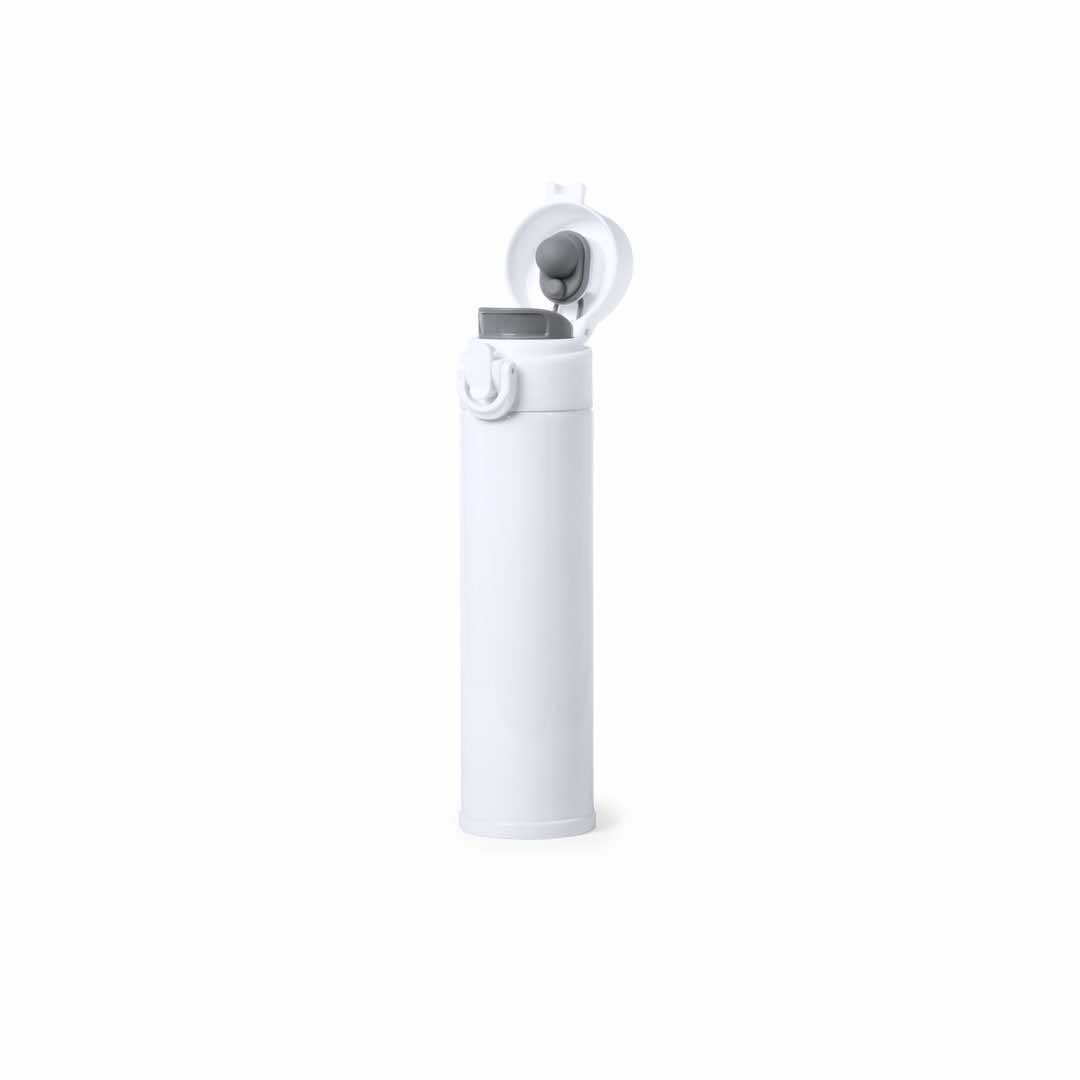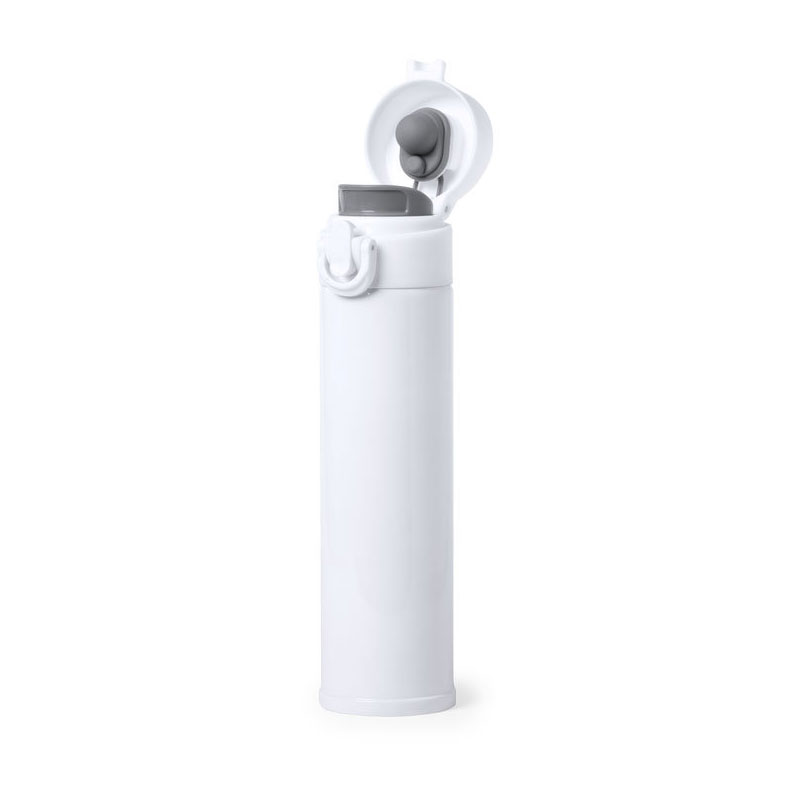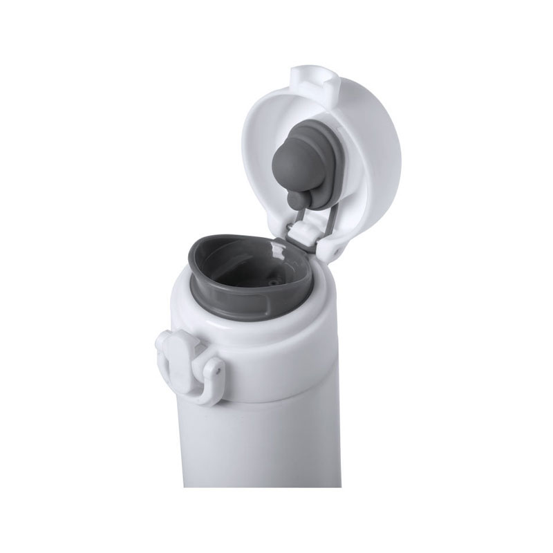 330 ml thermo in stainless steel. Double wall for a better and longer preservation of liquid’s temperature, with security lock and including an easy, button opening mechanism. Especially manufactured for sublimation printing and presented in an attractive design box