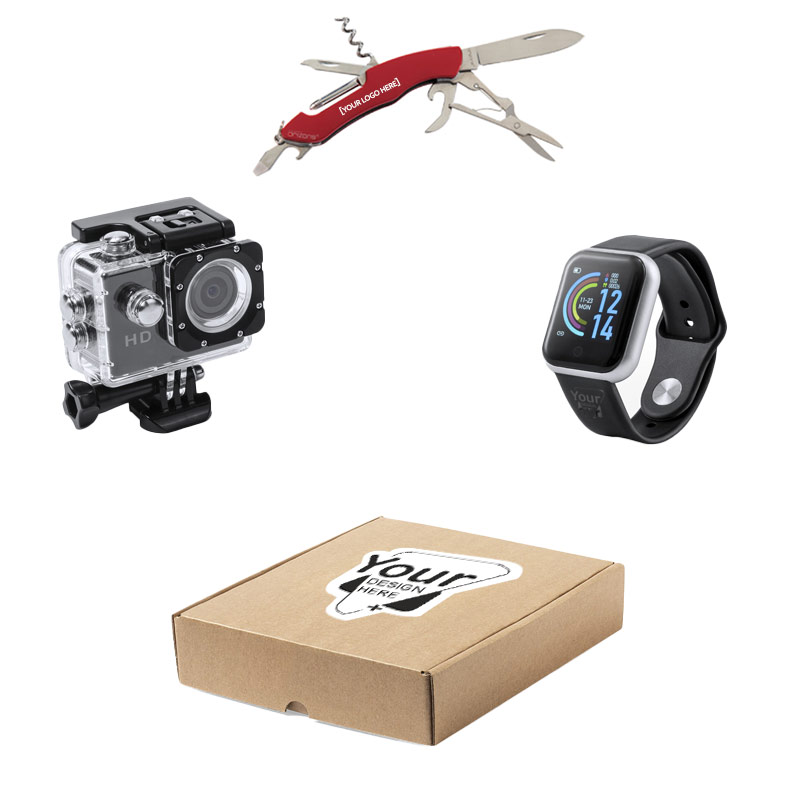 A kit that is designed for those that love adventures. Comes with camping gear and technology. 25 pieces, includes the below: