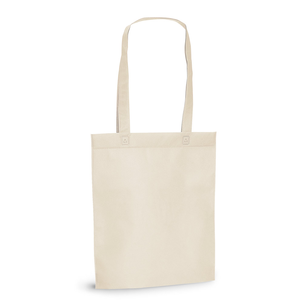 Thermo sealed non-woven bag (80 g/m²) with 55 cm handles.