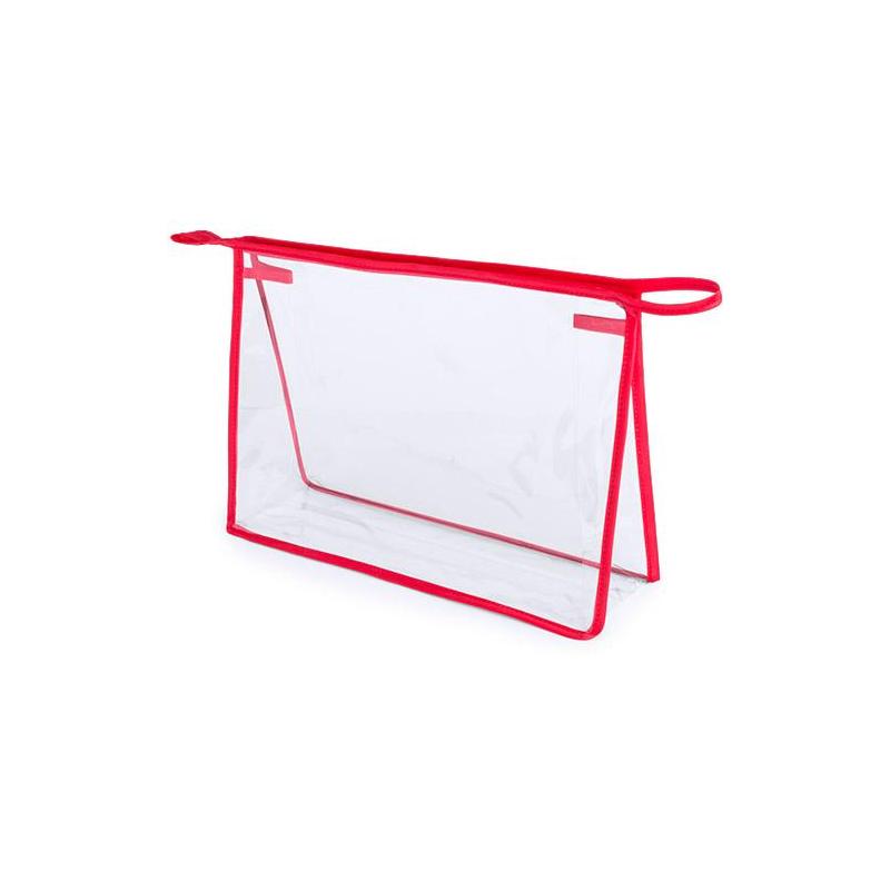 Multi-purpose bag in resistant transparent PVC with reinforcement edges in bright tones. With zipper and matching color carrying handle. 29 x 21 x 9 cm | 49 gr.