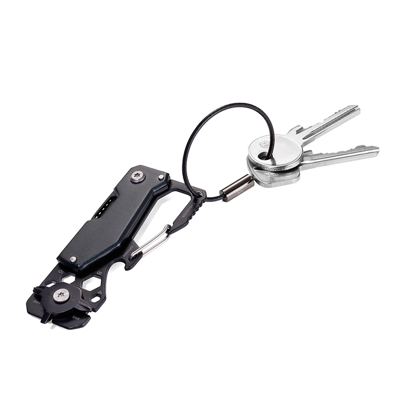 TROIKA 10-IN-1 MINI MULTI-TOOL WITH KNIFE, KEYRING & CARABINER – BLACK/TITANIUM