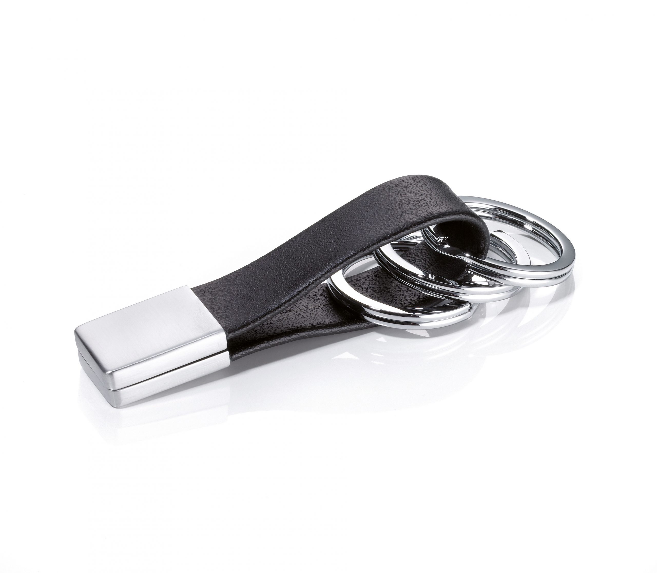 TROIKA KEYRING WITH LEATHER LOOP AND TWIST-LOCK – BLACK