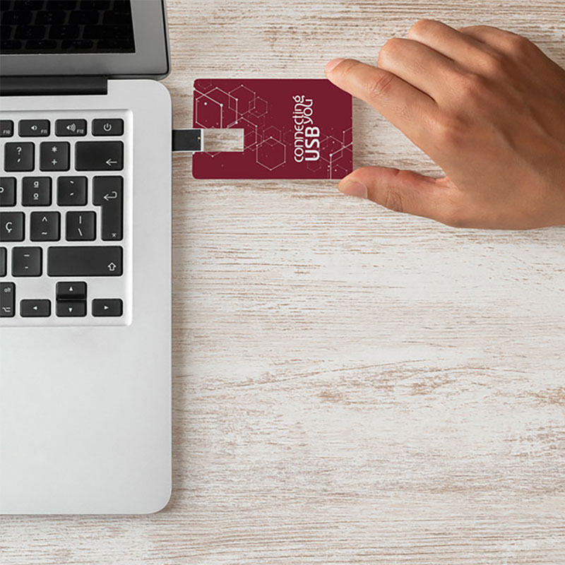 UDP flash drive up to 32GB in card format 3mm high UDP flash drive with capacity up to 32GB in card format. Customize this promotional gift with a logo. Packaging: This product includes a white paper gift box. Other types of customizable packaging (77610 and 77618)Software Features: We provide file saving and unit renaming services.