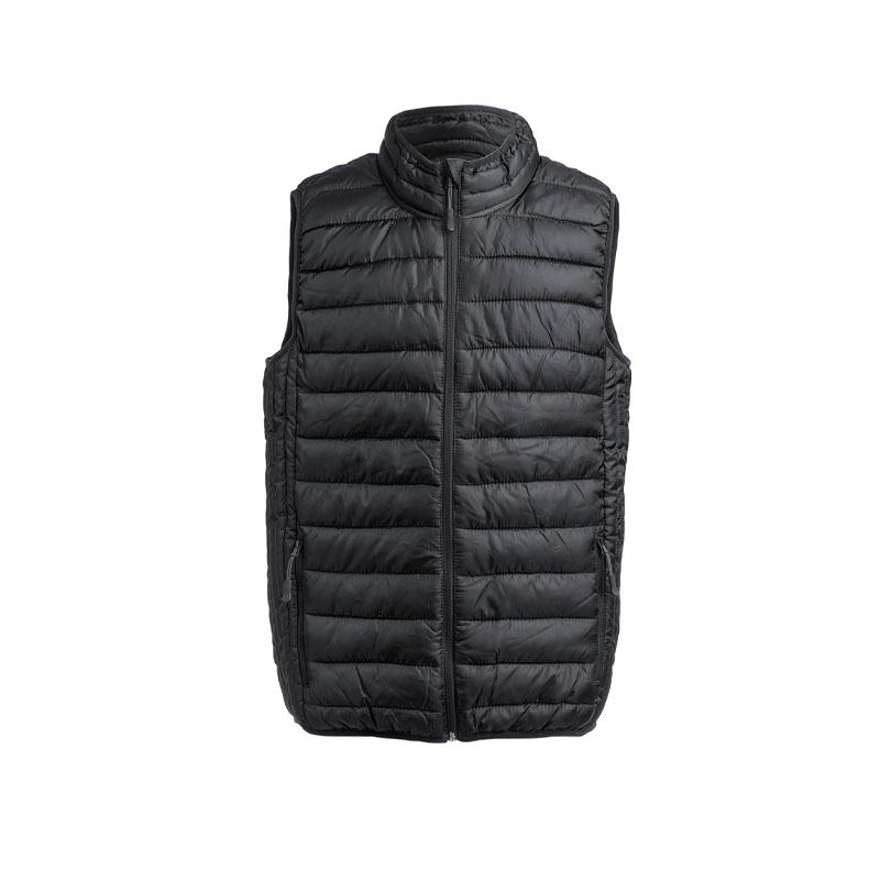 Vest in warm and soft, 100% polyester material. Extra lightweight material, water resistant and windbreaker, with inside padding. Covered neck zipper closure with strap in puller and large side pockets. Including a handy carry bag.