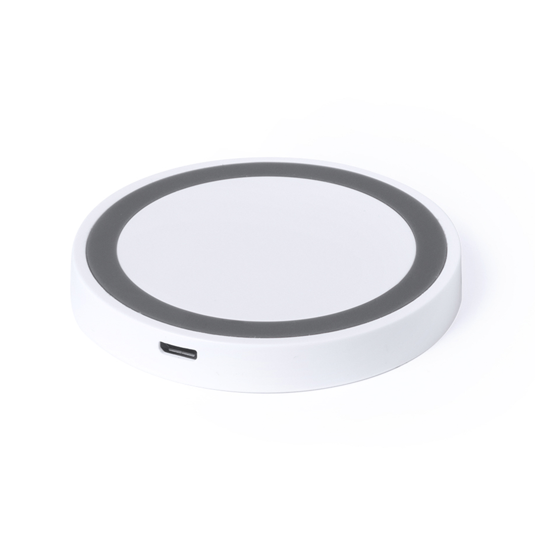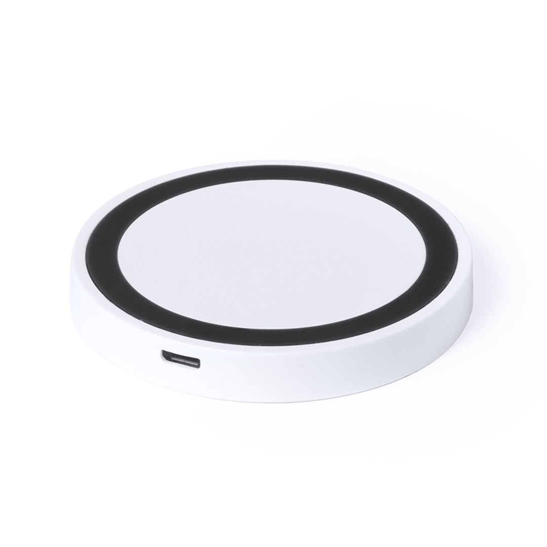 Bicolored charger. It has a non-slip base and an LED indicator for charge status. For smartphones with wireless charging technology and presented in a box. x 0.9 x cm | 7 O | 30 gr.