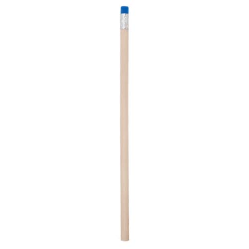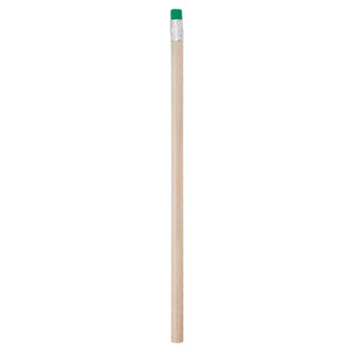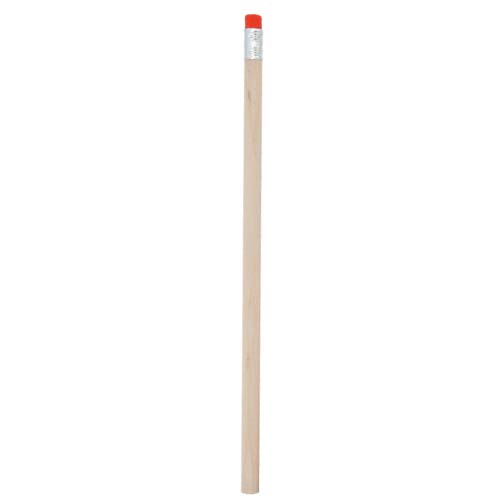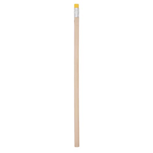 Wooden pencil with a round body in natural finish and rubber eraser in fun and varied colors. 5gr.