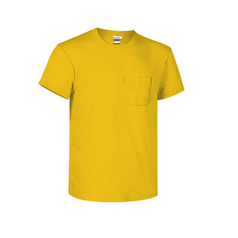 Classic cut T-shirt, made of 100% cotton ring spun plain knit fabric. Left chest pocket with reinforcement, round ribbed neck, shoulder to shoulder reinforcement and double stitching on neck, hem and sleeves. Yellow Sunflower
